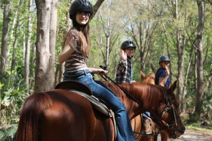 Trail rides are safely led by two friendly and experienced wranglers. Explore a variety of natural Eco-communities and terrain, where an abundance of wildlife, flora, and fauna can be seen. During the ride, guides share a wealth of information on the natural, historical, and cultural points of significance found in the park. One or two hour ride options, covering three or six miles of trail, allow guests to become immersed in the wonder of the natural surrounding. Traversing the depths of the vibrant surrounding forest by horseback offers one of the most unique experiences in all of Central Florida.