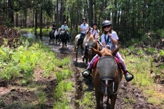 Trail rides are safely led by two friendly and experienced wranglers. Explore a variety of natural Eco-communities and terrain, where an abundance of wildlife, flora, and fauna can be seen. During the ride, guides share a wealth of information on the natural, historical, and cultural points of significance found in the park. One or two hour ride options, covering three or six miles of trail, allow guests to become immersed in the wonder of the natural surrounding. Traversing the depths of the vibrant surrounding forest by horseback offers one of the most unique experiences in all of Central Florida.